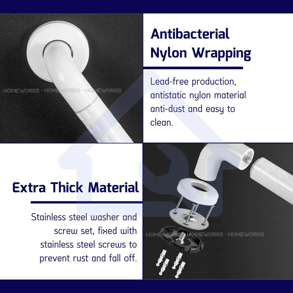 Package Include: 1 X Stainless Steel Nylon Safety Bar, screw, wall plug(Full set)
